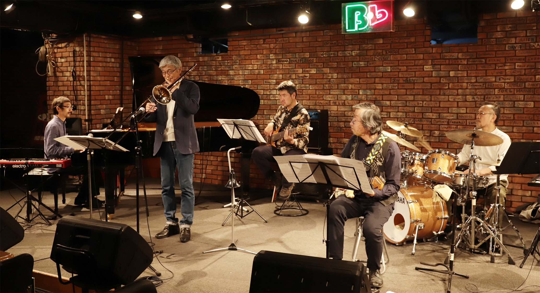 (trombone)早川隆章(guitar)奥田茂雄(piano)福本純也(bass)松永敦(drums)長谷川清司